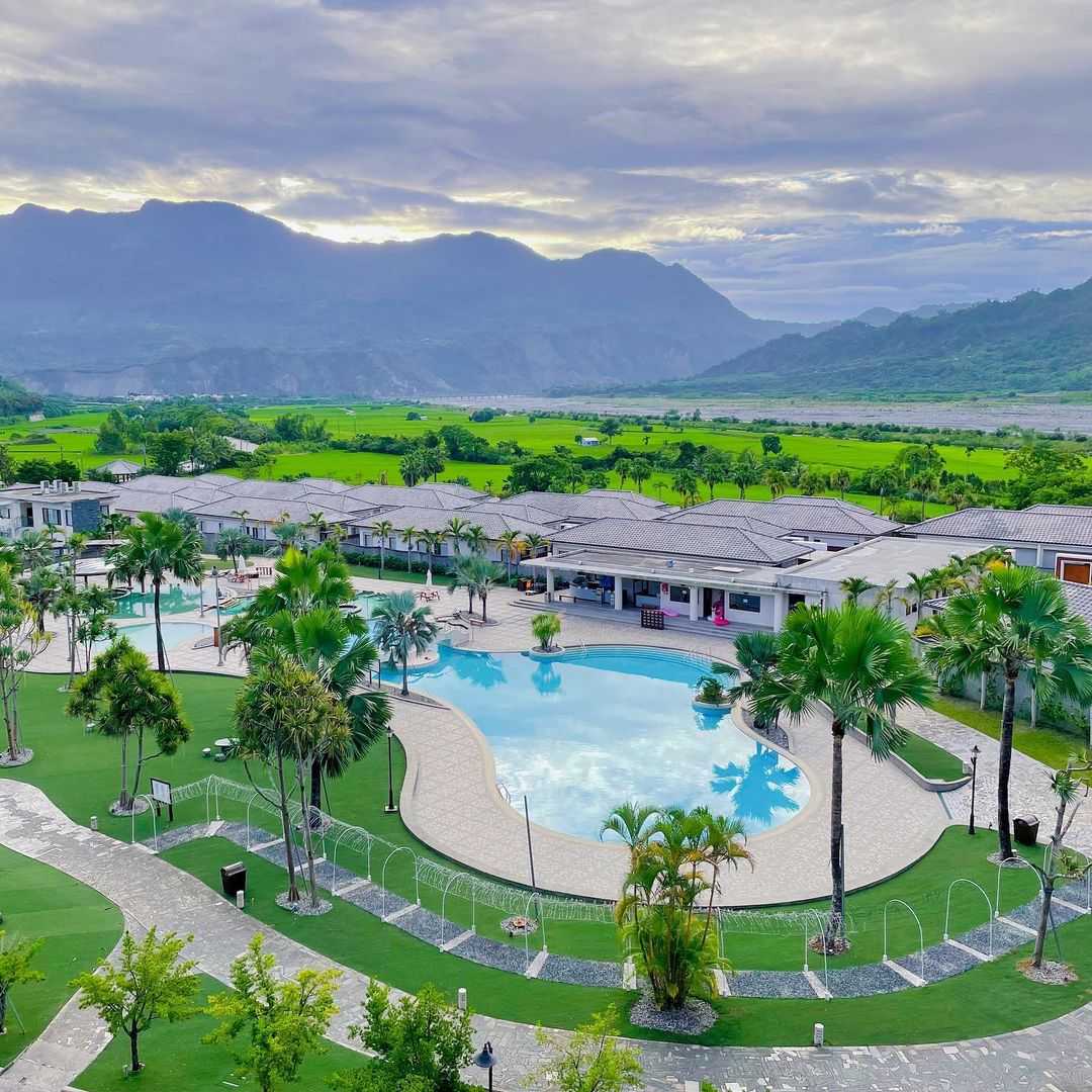 南洋風別墅、露天游泳池與熱帶棕櫚樹,宛如普吉島渡假村的「日暉國際渡假村」位在台東池上,佔地萬坪,擁有亞太地區最大的Villa群,別墅採低樓層建設,留給旅客花東縱谷美好視野,同時附近就是知名的打卡景點-「伯朗大道」,只要到飯店附設的腳踏車租借站租借單車,就可以悠閒漫遊伯朗大道,徜徉稻海美景。