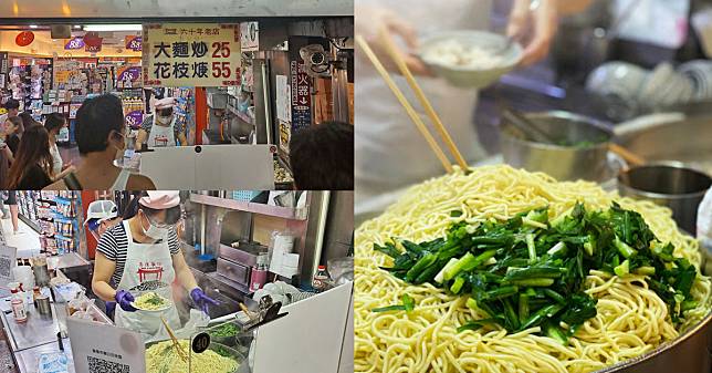 與一般炒油麵的作法不同,基隆獨特的「大麵炒」是用蒸的,是將油麵條攤放在錐形的蒸爐上,進而引起油麵本身的特殊香氣,老闆同時還會加上些許韭菜及蒜蓉淡醬油提味,好讓口感上也比較不麼那麼油膩膩、鹹度適中,而如果你愛吃辣,建議也可加上幾匙店家的特製辣醬一起拌,人間美味不過如此簡單,就足已讓人回味再三。而且下次記得細看下菜單招牌喔,上頭還有郭董簽名,連他都掛保證的好吃欸〜