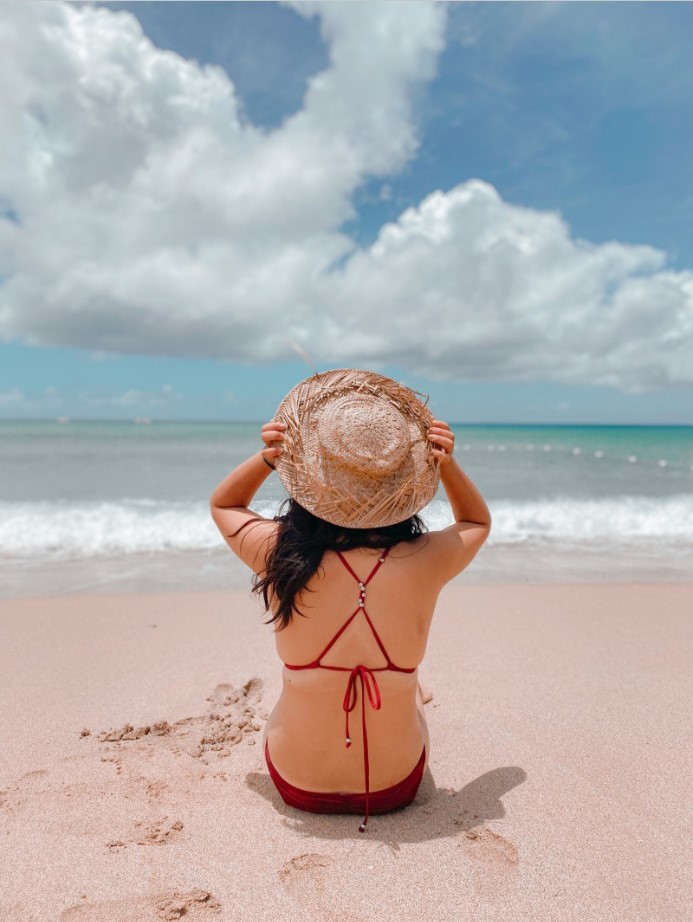 南灣可以說是夏天到墾丁必去的景點吧!沙灘上一顆顆的椰子樹,底下是整排的大陽傘,面向藍天白雲、藍海白浪,躺臥在傘下,喝著冰涼的飲料,彷彿置身在海島國家,滿滿地渡假風情。