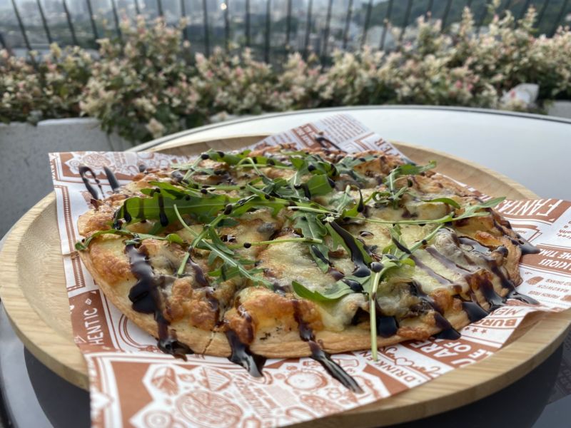 新社黑松露野菇烤餅讓人心滿意足,黑松露味完美的融合其他味道,不會太過搶戲也不會不見蹤影,讓大家對它停不下來。其中又以台中產菇之地-新社的香菇料理,使這款烤餅結合地方名產。