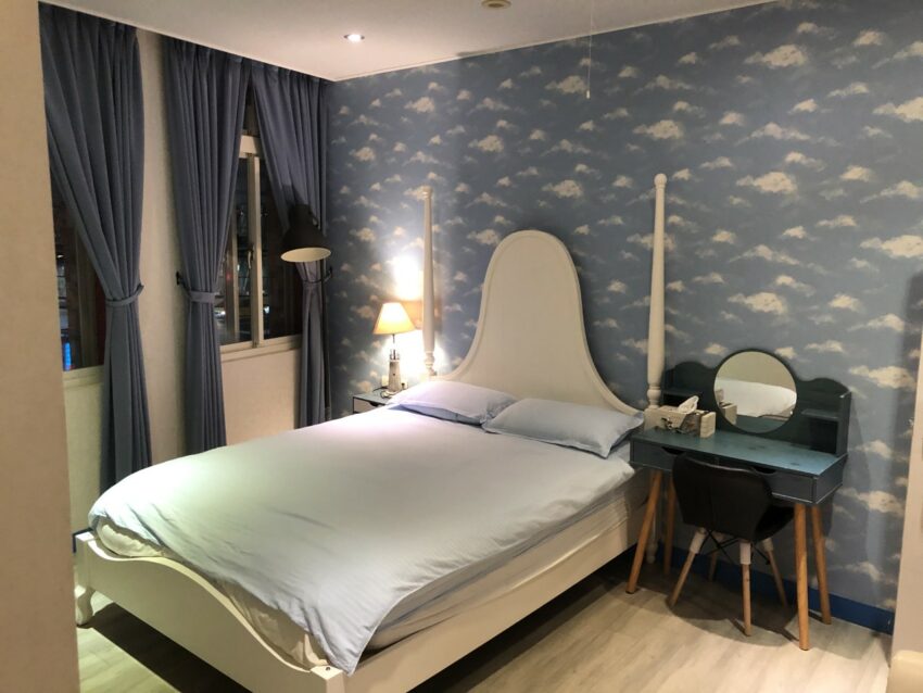 水之季主題旅館除了提供常見的上下舖共用房,還有以地中海、維多利亞為主題的雙人房。藍白清爽色調的地中海房,房內加入許多船錨、海鷗、漁網等海洋元素;維多利亞則是以粉紅兩色打造出英式宮廷浪漫感,兩間都很有特色,難怪有不少遊客會選擇水之季主題旅館!