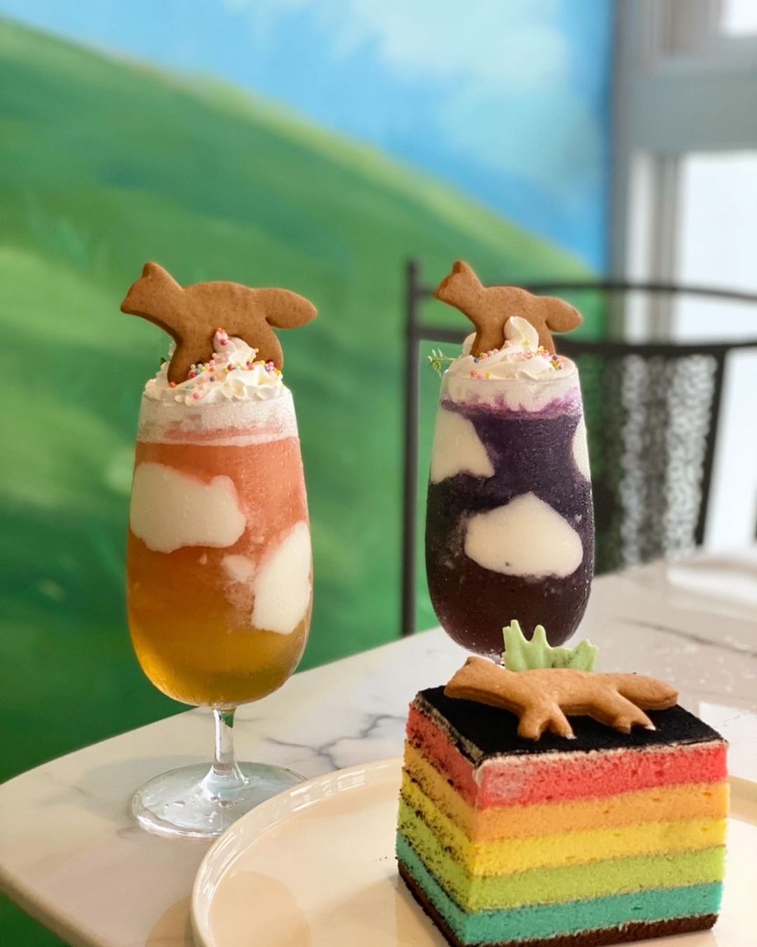 「狐狸小姐」是宜蘭礁溪新開幕不久的咖啡廳,同時也是「兔子迷宮礁溪浴場」的姊妹店。以童話故事《小王子》為發想,走上夢幻多彩玻璃樓梯,有東歐彩色教堂的既視感,一進到二樓需脫鞋,這裡的地板鋪設人工草皮,還有可愛的小帳篷可以拍照,另一區則是全黑螢光壁畫空間,有小王子遊蕩在海底世界與叢林的插畫,走到三樓還有戶外葡萄園及球池,每一層樓都有不同的主題風格,店內販售的漸層飲品與彩虹蛋糕也極具童話色彩,適合喜歡多變嘗試的你~