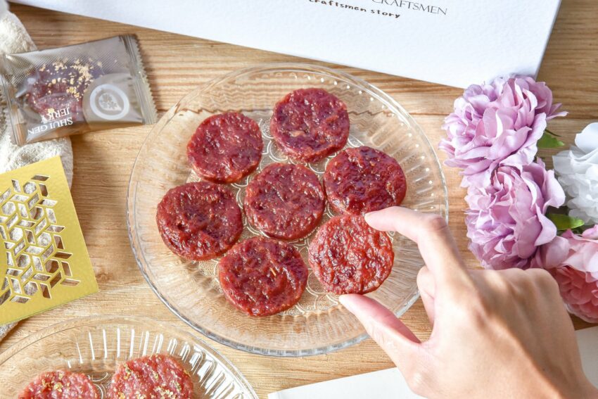 肉乾加入檸檬調味,完全是新口感,呈現清新爽口的肉質,堪稱是店家招牌殺手鐧,而它的圓圓外形,也非常討喜,經常賣到缺貨中;原味肉乾製作前都經過去筋處理,肉質不卡牙縫,咀嚼上更有咬勁,非常耐吃,一小包根本不夠填嘴,肯定得多帶幾包才吃得過癮。
