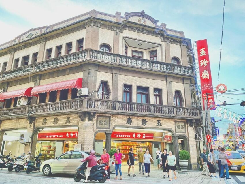 店門充滿巴洛克式建築的優美,榮獲登錄彰化的歷史古蹟之一。至今已有140年頭的玉珍齋,堅持傳統原味重現,古老的鳯眼糕,日治時期,曾獲金賞獎!
