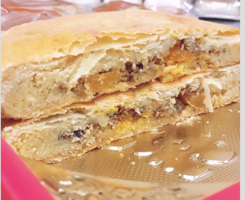 整合的新口味,光餅皮就混合了傳統油皮和港式蛋皮組成,紅豆核桃蛋黃,特製軟紅豆餡,舖上硬核桃,鹹蛋黃夾在其中,更豐富了餡料的層次;芝麻核桃餅,使用核桃當配料,再加上冬瓜、滷肉、腰果、芝蔴的主內餡,讓人吃了很滿意。想要增添囍氣,就多吃囍餅。