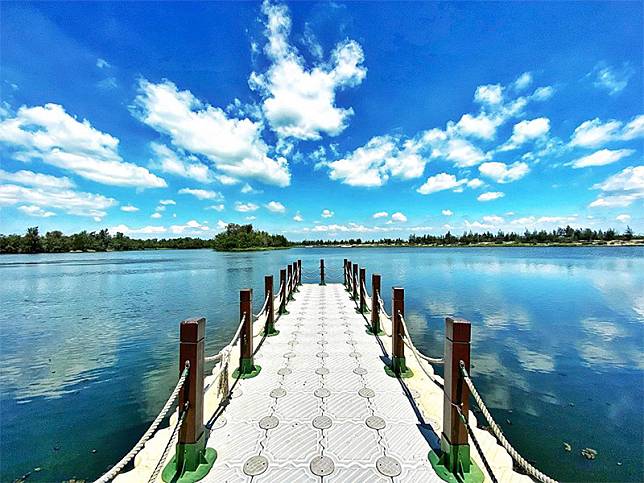 有雲林版小日月潭美稱的椬梧滯洪池,為口湖海角新一代的熱門IG打卡點。因颱風來襲造成海水倒灌,意外造就濕地廣大的景觀池,一整片絕美湖景,不僅有蓄水功能,也能有效解決口湖地區的水患。樹林與溼地孕育了豐富生態,漫步在環湖木棧道與觀景台,欣賞水鳥們飛翔的姿態,是喜愛水邊風光者的一大享受。