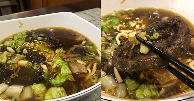 這五家店「個人風格」最明顯的就屬於「廖家」了!與金華街的必比登牛肉麵師出同門,但近期又屬這家的人氣更旺一點。有別於一般牛肉麵店,放滿青江菜、酸菜,廖家這是大把大把的空心菜。若你屬於重口味一族,那你應該會很喜歡他們家的口味,他們家的湯底彷彿是濃縮5倍精華,一入口爆濃的大骨香氣先鎖住你的味蕾,再來是獨特的香料味,真的跟你想像中的牛肉麵很不一樣。小編提醒一碗份量超!大!建議兩個女生合吃一碗。