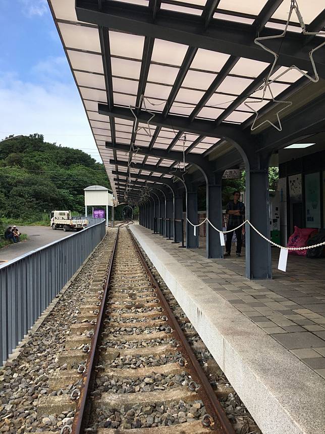 小編這次預約到的場次是11:30從深澳站發車的車次,所以是直接在建基煤礦站下車,回程若要搭車要在對面的站牌等車。一下車就會看到深澳鐵道自行車站外的繽紛裝飾和餐車,順著指示牌排就能到達深澳站月台。