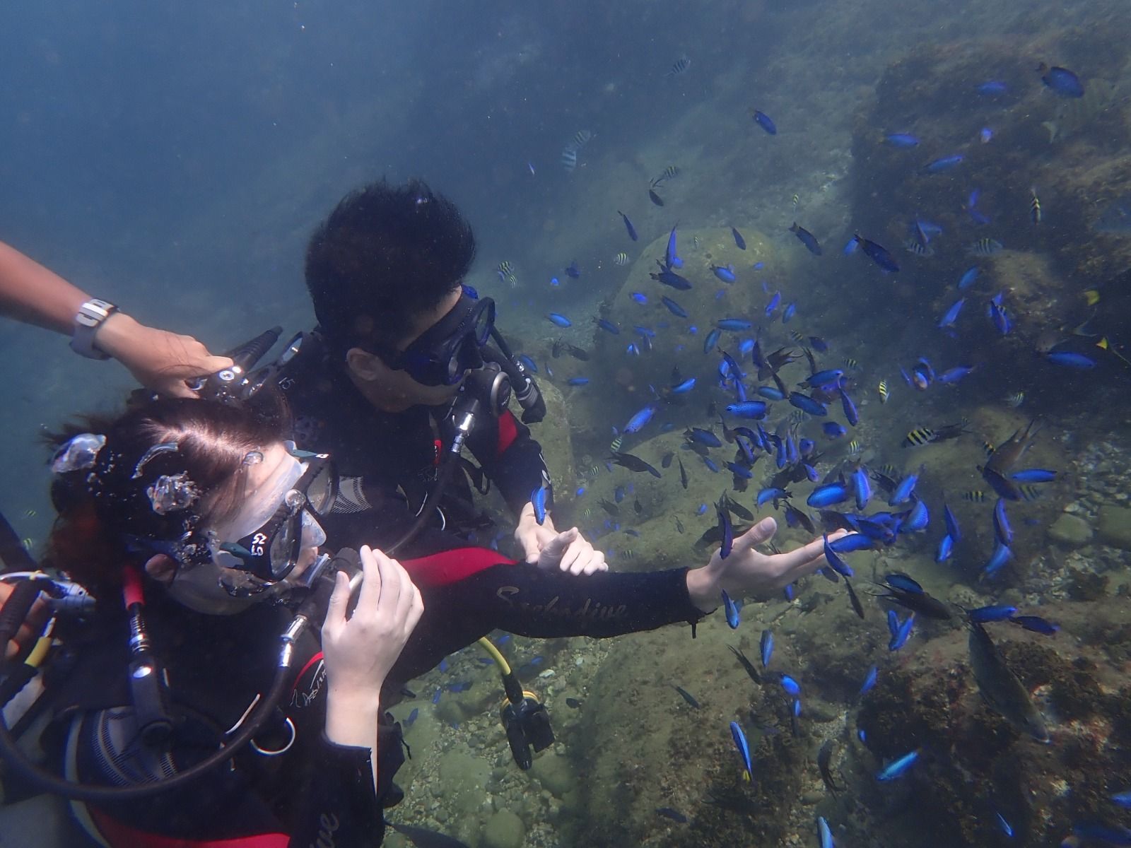 從未接觸過潛水的玩家也許會對於潛入海中感到有點怕怕的,不過千萬別擔心!專業教練會先進行岸上教學,細心說明潛水運動以及器材使用,也會在練習池讓玩家練習調節呼吸器、平衡耳壓等基本動作;降低玩家初次前往海底世界的擔憂,只要盡情享受海底世界的美麗!