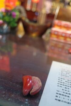 2、若第一次未獲「聖筊」,可再次向土地公行禮並告知姓名、住處以及許下心中祈求的願望,