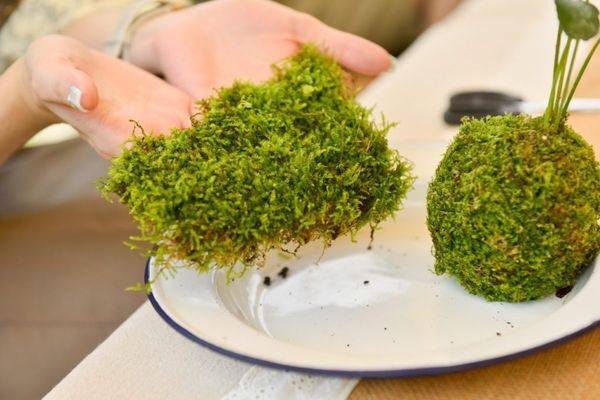 手上捧著充滿生命力的可愛苔球,感受雙手接觸柔軟的土壤和濕潤的苔癬,透過植療放鬆活動在露營區裡享受與大自然親密接觸的午後時光。