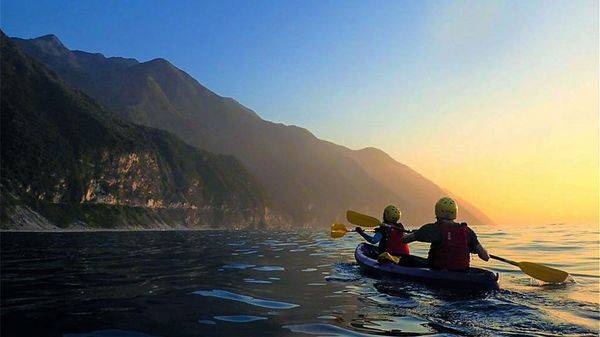 在銀河和月光下搭帳,在大海聲伴眠下入睡,隔天清晨划著獨木舟到中央山脈的起點「烏岩角」看東澳灣日出。