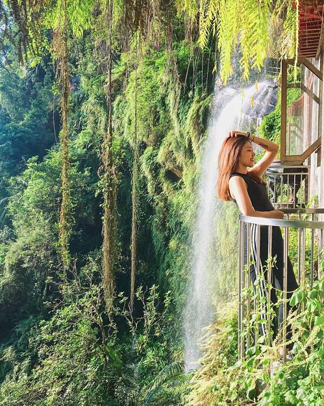 和閨密爬到瀑布這邊別忘了幫彼此拍張照片,這個網美必拍角度(如上圖)拍過去,能拍到凹壁上綠色的枝條,和後面的瀑布,看起來就像在仙境一樣。