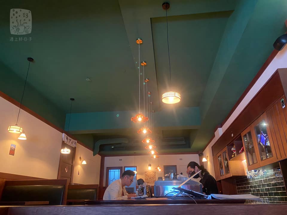 潮州街上極新的店家,地板是老宅原裝的台灣綠色蛇紋石,全空間以高高的護壁板、酒紅色的絨面窗簾、以及散發柔和光芒的電笠(玻璃燈罩)塑造出令人嚮往的昭和喫茶店情調。每一區座位都安置了插座,是對電腦使用者相當友善之地。
