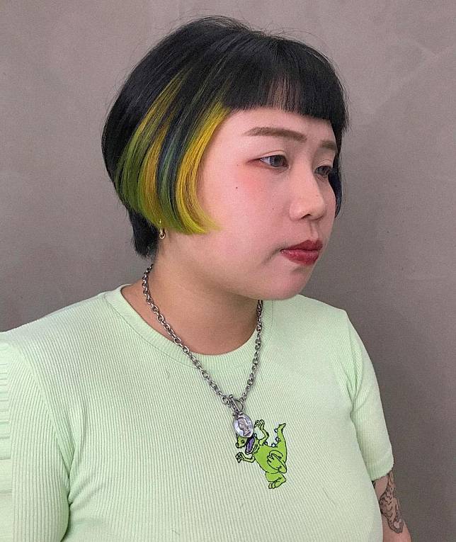 不想漂整頭也OK!保留原生黑髮,耳圈染幾縷萊姆綠、檸檬黃,一樣搶眼又有新意