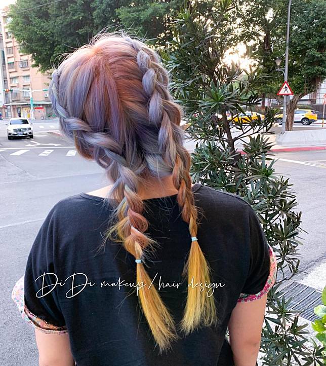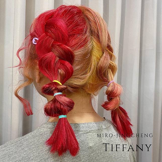 漸層冰沙髮色紮起髮辮更是美得囂張,整頭又是芋泥紫、薄荷綠又是香橙黃的,美到讓人不禁想問「這是真髮嗎?」