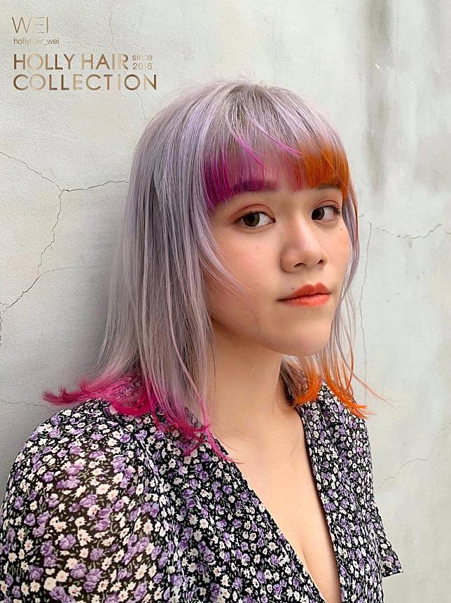 拿這款仙氣逼人的鎖骨髮來說吧,像不像是整頭漂染綿密的牛奶冰沙色後,再把瀏海與髮尾浸到火龍果與橘子糖漿裡呢?