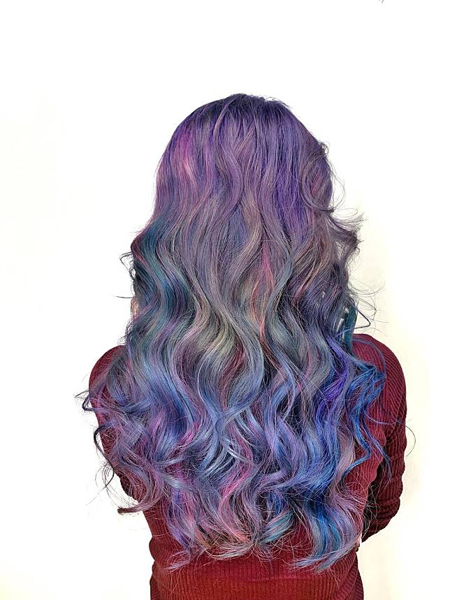 也別忘了飲料店裡很夯的蝶豆花紫!鮮豔奇幻、令人著迷的藍藍紫紫漸層,搭配浪漫波浪大卷簡直美哭啦