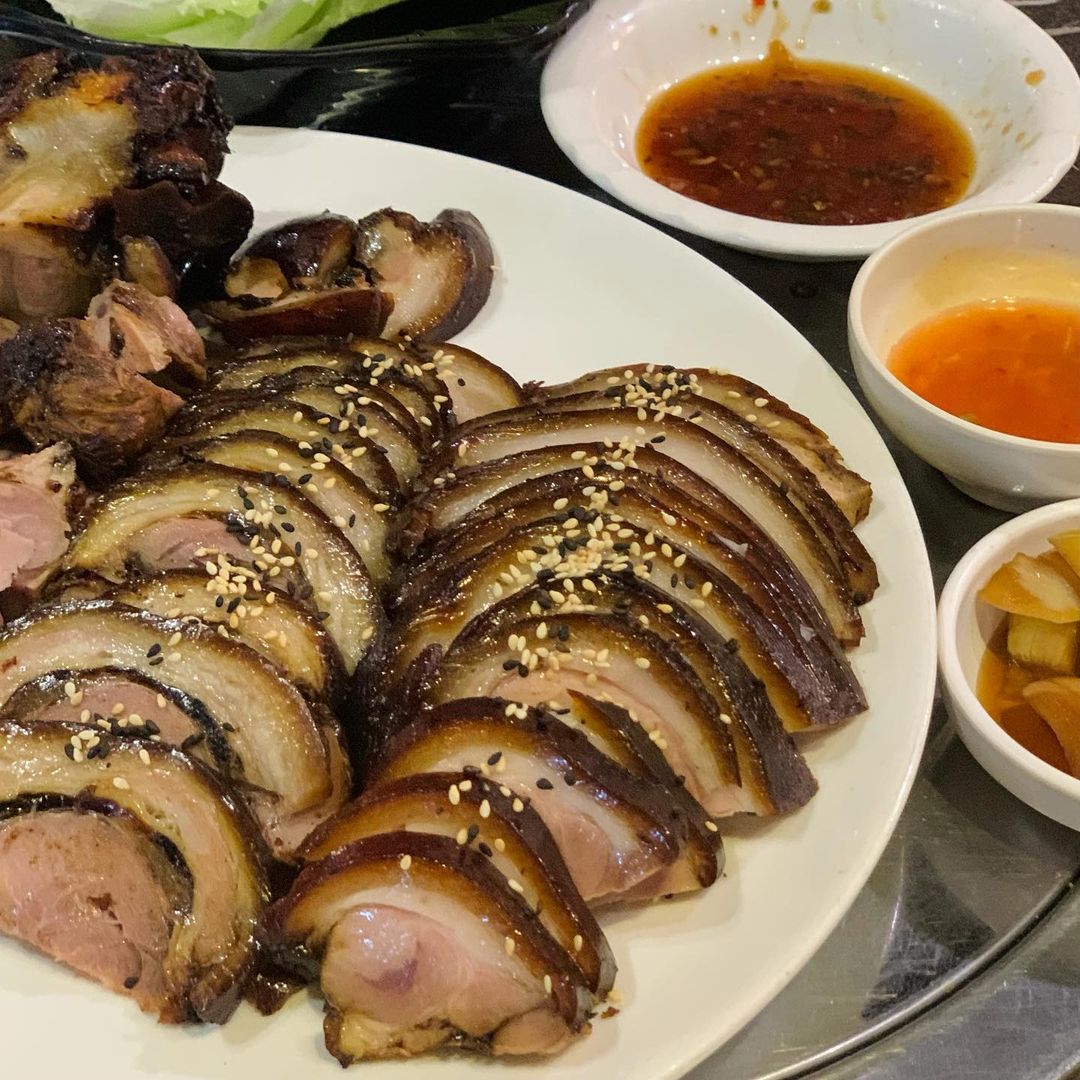 晚餐或是消夜想吃點好料的時候,很多韓國人會選擇外送豬腳來吃,和台灣帶骨的滷豬腳不同,韓食堂提供的是一大盤切好的冷盤豬腳,肥肉充滿Q彈膠質,肥而不膩、入口即化,或是包進生菜裡,放上醃洋蔥、蝦醬,也是軟嫩夠味。