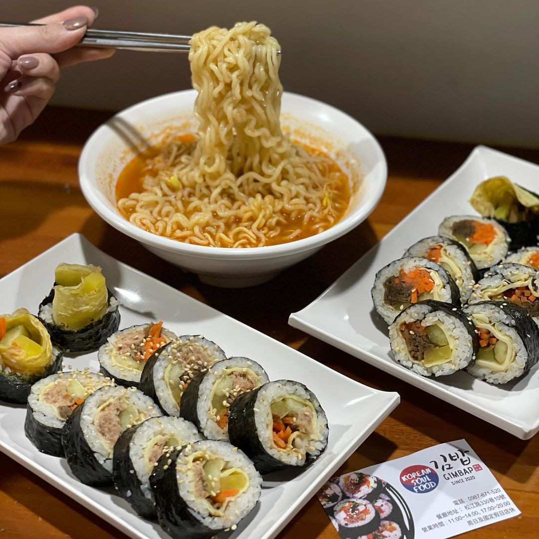 常追韓劇的人應該不難發現,店名「GIMBAP」其實就是飯捲的韓文發音,店內所有店員都是韓國人,開放式廚房可以看到老闆娘認真包飯捲的樣子,讓人有種來到韓國街頭錯覺,店裡除了多種飯捲口味可以選擇之外,還有泡麵、拌飯可以選擇,是銅板價就能滿足的樸實好味道~