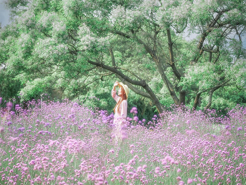 春季紫色美景不停歇,繼苦楝花、紫藤花之後,青林農場的馬鞭草花海也現身了!高聳的花莖上開著點點紫色小花,精靈系美景怎麼拍都超夢幻!