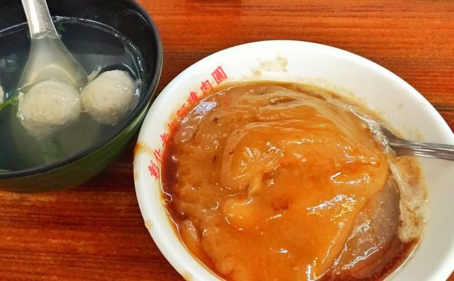 吃過了兩種不同風味的彰化肉圓,還可以來試試這家肉圓仔湯,介於肉圓與鹹湯圓之間,不同於一般鹹湯圓使用糯米,肉圓仔使用馬鈴薯製作外皮,呈現半透明的色澤,使用豬肉塊加上油蔥做為內餡,鮮甜肉汁配上Q軟外皮,完美比例的好滋味,還有魷魚肉羹也是另一道人氣招牌,滿滿的魷魚與肉羹,配上甘甜湯頭難怪人氣不墜。