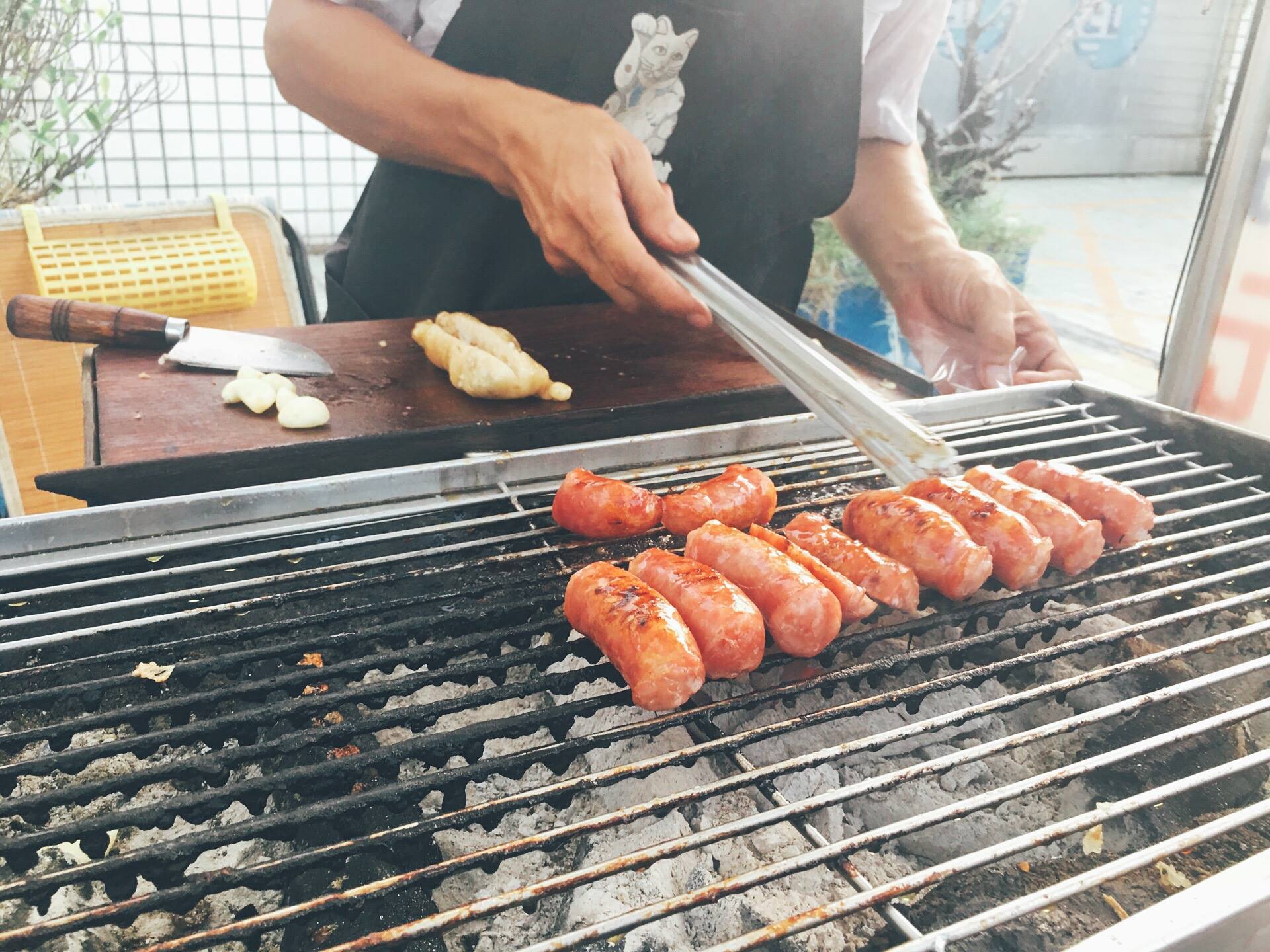 綽號排骨的老闆已在當地賣了將近五十年,目前由二代接手,炭烤香氣濃厚,肥瘦比例各半的香腸多汁香甜,大腸口感綿密。