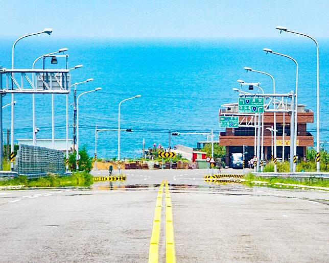 淡水藍海大道有著筆直的道路,遠遠的可以看到兩旁整齊的路燈與遠方的湛藍海景,迷人的風景一點都不輸台東的太麻里火車站喔!