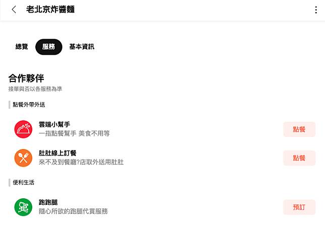 跑跑腿 北部地區立即點擊商家資訊卡下的服務按鈕!