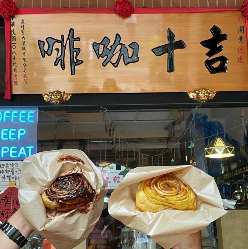 新竹城隍廟北門街上的紅磚騎樓老街,有家評價高達4.7顆星的咖啡廳【吉十咖啡】,外觀看似平凡,進到店內空間瞬間變成另一個獨具特色的世界。店內招牌蝸牛圈圈肉桂捲,好吃的程度讓網友甘願為了它專程跑一趟新竹!