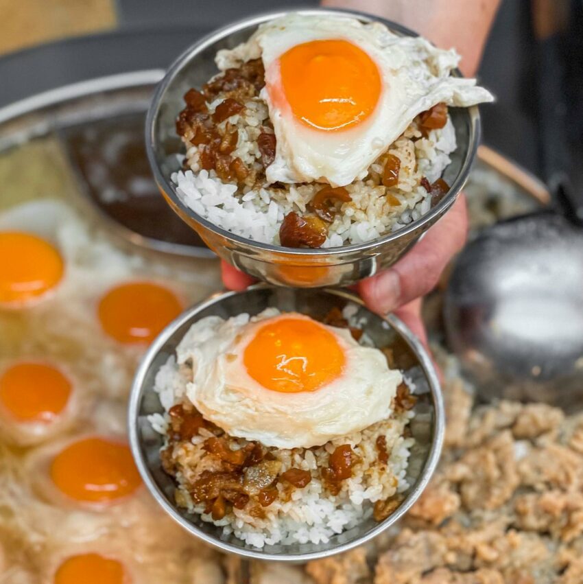 來到鴨頭正二代的攤位,必點招牌料理是赤肉咖哩飯和蛋包瓜仔肉湯。台式咖哩飯是入味的印度咖哩配梅花豬,大口大口嗑完爽感爆表,再搭一碗湯頭鹹中帶甜、料多豐富的蛋包瓜仔肉湯,赤肉羹鮮嫩,半熟的鴨蛋黃濃郁滑口,獨門美食令吃過的人都印象深刻。