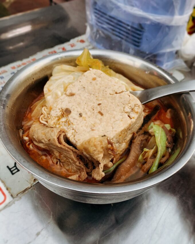 林記麻辣臭豆腐是寧夏夜市的人氣美食,湯頭濃郁、香辣夠味,基本款的麻辣臭豆腐可以加新鮮鴨血、豆皮、高麗菜、冬粉、大腸頭、王子麵,滿滿一碗非常有飽足感。值得一提的是,有蝦仁的大腸蚵仔麵線,也是林記的特色,用新鮮蝦仁、東石蚵仔、大腸頭、手工麵線、自製香料熬製湯底,是林記傳承了 70 年的獨門美味。