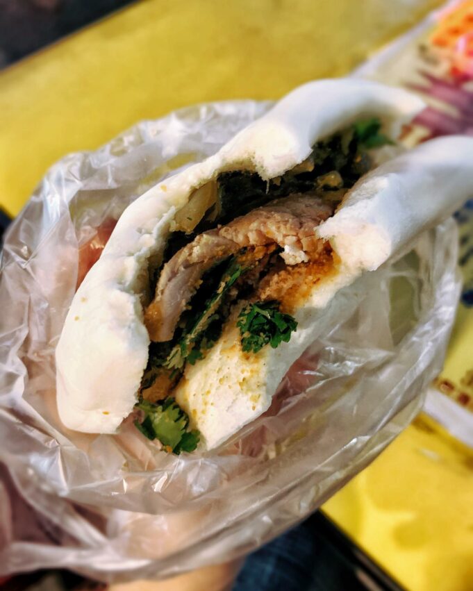 來逛夜市,一時要吃什麼沒想法,選刈包就對了!刈包裡頭的精華是那塊魯控肉,洪記刈包的豬肉是選用溫體豬的五花肉與赤肉,先炒再滷,將肥肉中的油脂逼出,再慢滷至酥爛,肉汁滲入綿密的麵皮中,入口甜鹹穿插、肥而不膩。