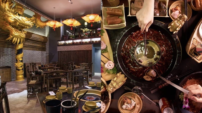 位在中山區的「蔡記隆府龍頭寺老灶火鍋」裝潢超氣派,外觀以中國宮廷風設計,走進店內立馬看到超浮誇的立體龍、燈飾,連桌椅、碗盤每個細節都很精緻,真的氛圍感滿滿。這裡有提供單點或套餐,各式各樣菜色都有,最大的特點是點鍋物會附贈一碗「麻辣滷肉飯」,吃過的都給五顆星好評,真的要手刀定位了!