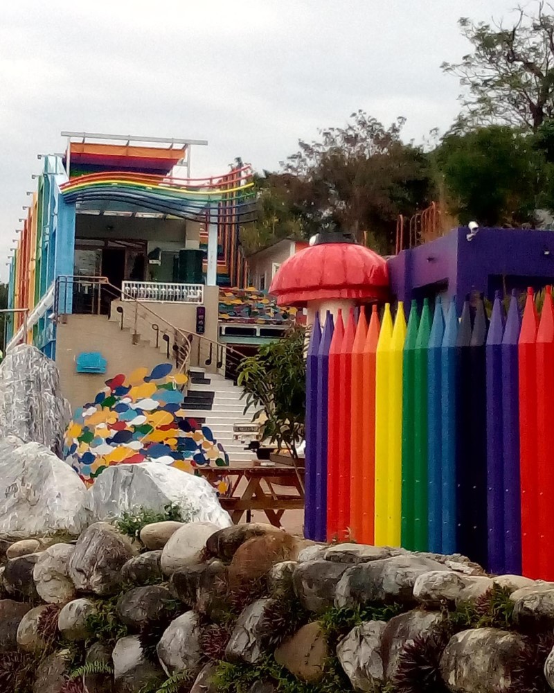 為景觀餐廳民宿的「彩虹山舍」,除提供舒適的寵物友善旅宿空間、精緻的簡餐與下午茶,園區內紅裙長腿裝置藝術、音符琴鍵樓梯及絕美遼闊的迷人夜景,無論是白天還是夜晚都可盡情大拍美照。