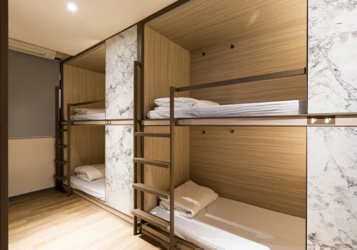台灣的背包客棧數不勝數,大家是否會好奇誰才是全台第一家開山始祖呢?答案就是座落於萬華區的橙舍 TW Hostels,儘管創立至今已逾十年,但其仍然憑藉著富有特色的客房在業界屹立不搖,除了歐式風格的典雅上下舖床位之外,還有吸睛的太空艙房型,小巧的空間受到妥善地充分利用,充滿現代感的內部牆面嵌入了電視螢幕、影音系統以及保險箱,令人連住多晚也不會無聊。