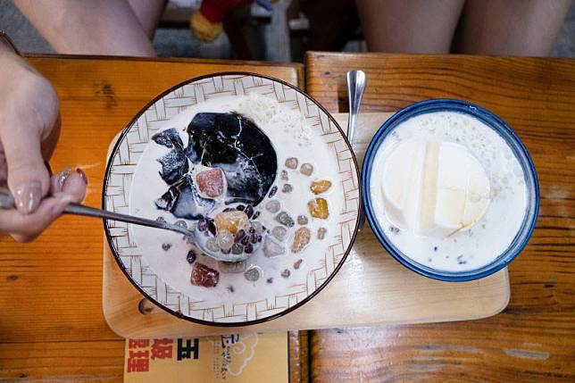 除了堅持古早作法的手洗愛玉之外,女孩們點的七彩芋圓綜合仙草凍與杏仁豆腐冰也是店內的熱銷款,手作的芋圓、地瓜圓搭配上仙草特有的微微苦韻,再加上滑順的奶香味,整碗仙草凍就成了完美之作,而杏仁豆腐冰入口則是濃醇的杏仁味,喜歡杏仁的朋友絕對會喜歡。