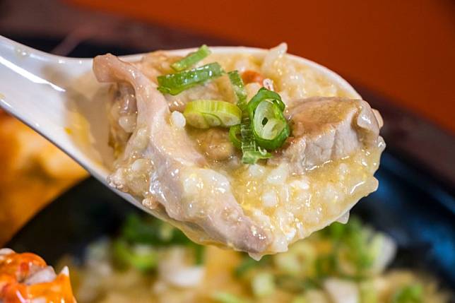 比起其他粥品,麻油土雞粥顯得樸實許多,但它可是店內的人氣商品,店家堅持選用台灣土雞腿與香氣十足的麻油下去熬煮,土雞腿的肉質滑嫩帶點Q彈,麻油香氣隨著土雞腿肉在嘴裡蔓延開來,瞬間讓人迷失在這美味中!粥上除了灑滿了蒜酥、芹菜、蔥花外,還淋上了一圈的麻油,讓饕客每一口都可以品嚐到麻油迷人的香氣。