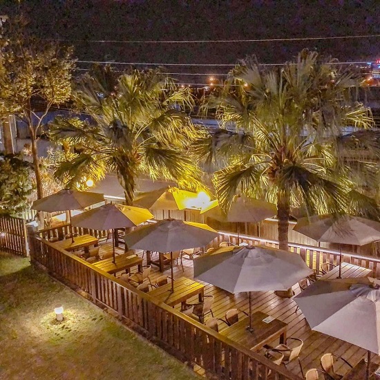 不同於一般在山上的景觀餐廳,位於海岸邊的大池覓蜜的夜景則是橋墩搭上七彩燈的另類浪漫。隨著龍潭大池水岸休憩廣場的開幕,帶動了假日的休閒人潮,除了市集之外,大池覓蜜的開幕馬上成了桃園的打卡景點,擁有大片落地窗,古典風格十足的裝潢,一邊喝酒、一邊欣賞河畔與光影的變化,是不輸山上夜景的浪漫啊!