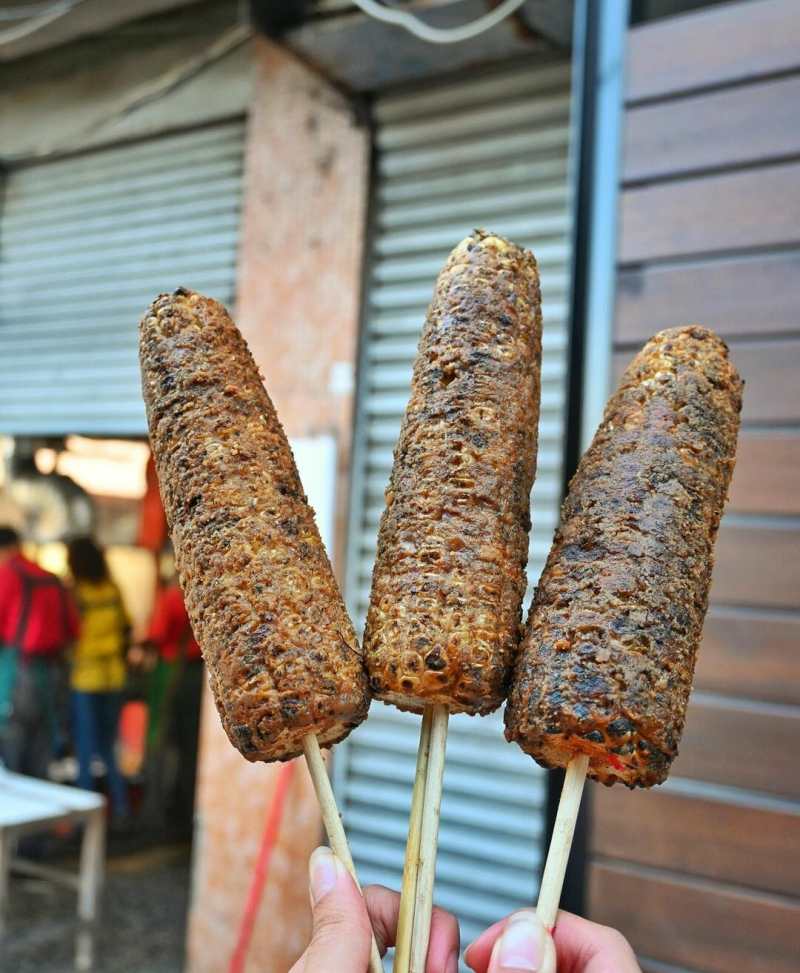 傳說中,中午點餐晚上才能取餐的最強阿婆烤玉米,還沒開門就大排長龍,可自行挑選軟或硬的玉米,依重量結帳後領取號碼牌,店員會告知取餐時間,玉米每天限量,建議大家提早去排隊,點完餐去跑其他行程,晚點再回來拿就好。阿婆烤玉米選用的是糯米玉米,利用傳統碳火烤玉米,熟練的在爐子上手動翻轉玉米直至焦香,刷上獨特的秘製醬汁,鹹甜中帶有花生的味道,口感十足,越嚼越香。