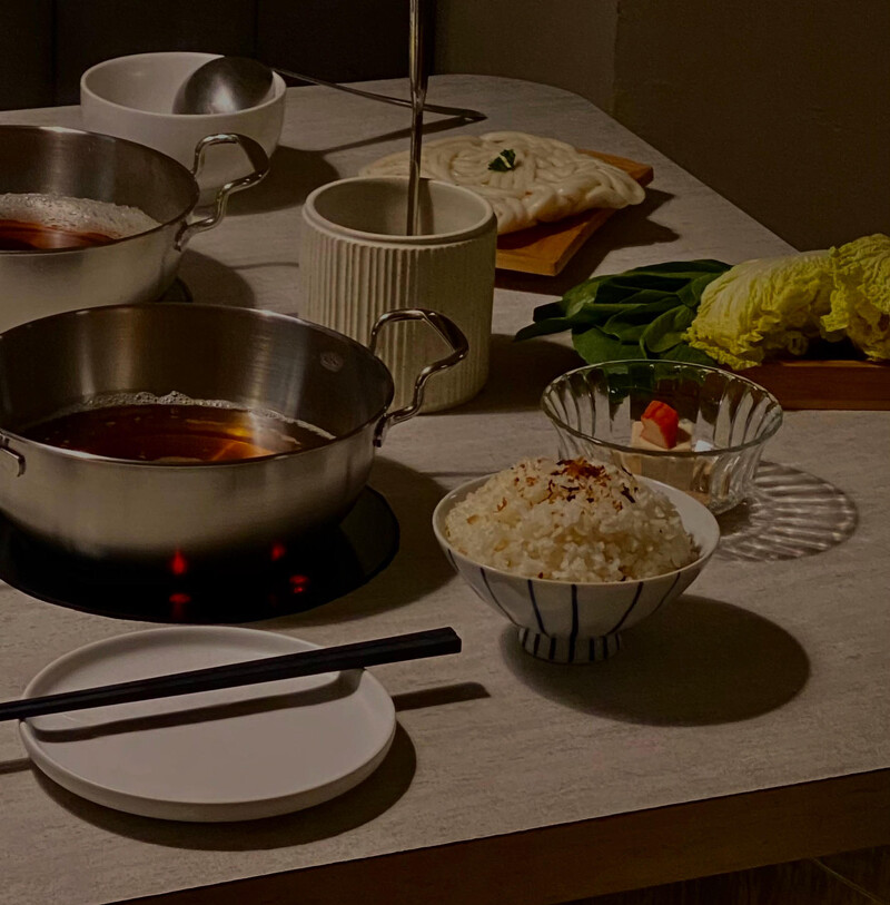 湯底可以帶有茶香的湯底、以新鮮蔬果熬煮的日式湯底,這兩款湯頭皆沒有加味精卻十分清香甘醇,在熟燙鮮食後不沾醬直接享用,有種吃關東煮的感覺,大家可以依照個人喜好配喜愛的肉品、海鮮,餐後甜點則會送上紅豆抹茶最中餅作為一餐最完美的ending!