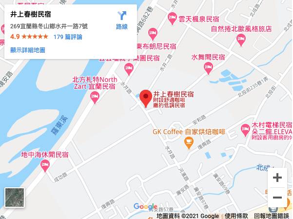井上春樹位在冬山鄉的水井一路,緊鄰羅東運動公園,主打8-14人的包棟民宿類型。鄰近水源地,取「春季水井上發芽茁壯的樹」這樣的地緣特色而命名。期望能將這樣朝氣蓬勃的自然生趣帶進民宿裡,讓來到這裡的旅人們擁有清新自在的溫馨住宿體驗。