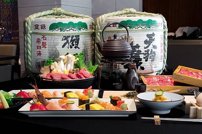 日式火鍋與握壽司吃到飽餐廳,食材餐車桌邊服務貼心又方便。