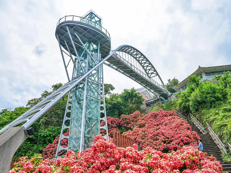 園區內生機盎然,動植物種類繁多,站到觀景台上登高望遠,漫步其中感受著鳥語花香,抵達觀景樓頂樓,這裡有座天空橋是來此必訪的景點之一,也是欣賞水庫景色最佳的位置,遠眺群山環繞,近看湖面風光,欣賞周邊花海,感受大自然充沛的生命力,體驗被森林環抱的感覺。