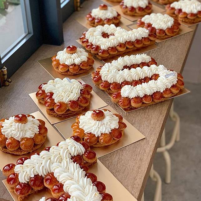 以知名KOL COS推薦而爆紅的法式甜點店,原味的聖多諾黑泡芙塔是店內的暢銷經典甜點,除了原本的造型以外也可以客制成單字字母的形狀,吸引很多人會特別訂製壽星的英文名字首字來慶生!