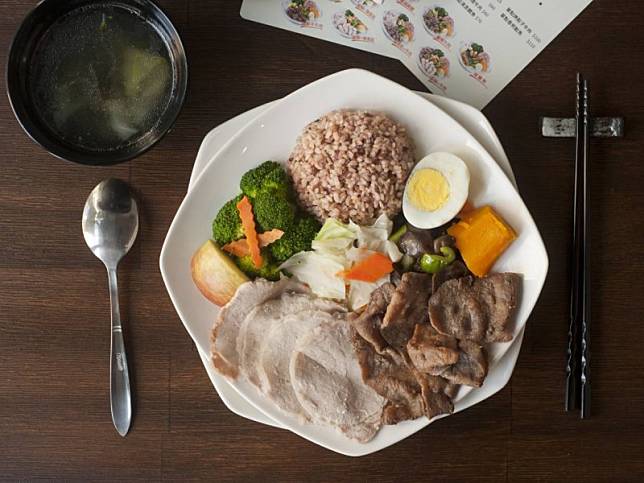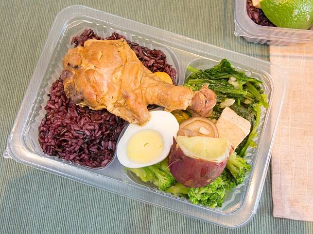 主打水煮、無油的健康時代,在料理調味也堅持減鹽、減醣,食材也都選用高蛋白、高纖維,並搭配簡單的烹調方式,呈現食材本身最天然的味道。健康食代的米飯採用紫米五穀飯,口感嫩Q不會過硬,且帶有穀物的香甜氣味,每份餐點會附上一份主菜、2種配菜、半顆水煮蛋和地瓜,鹹甜都有、味道豐富。