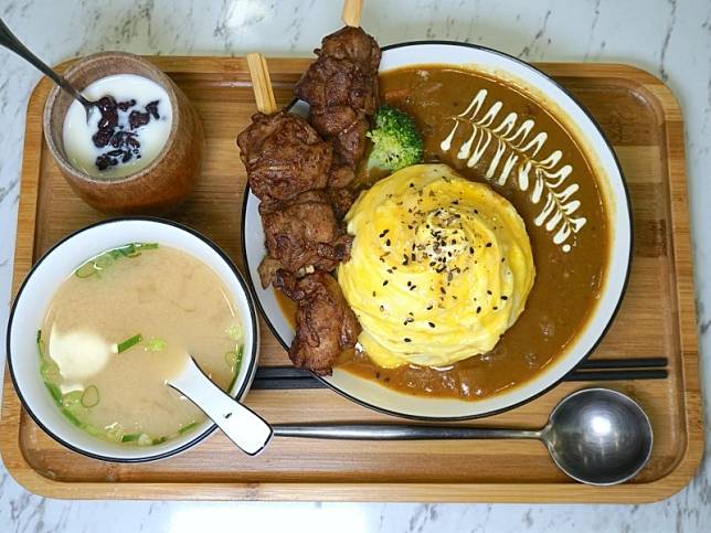 同樣受到歡迎的還有這裡的附餐,一般的早午餐無非就是培根火腿蛋之類的配置,但這邊的附餐相當特別,乃是飯糰與烤雞肉串,一個增加飽足感、一個增加吃肉的滿足感,都是足以單獨販售的美味。和老闆娘聊天的時候得知,他們打算將森渡打造成一家獨樹一幟的早午餐店,所以才花費心思在設計餐點、研究食譜上,這樣的職人精神相當令人感動,推薦給大家多來支持一下。