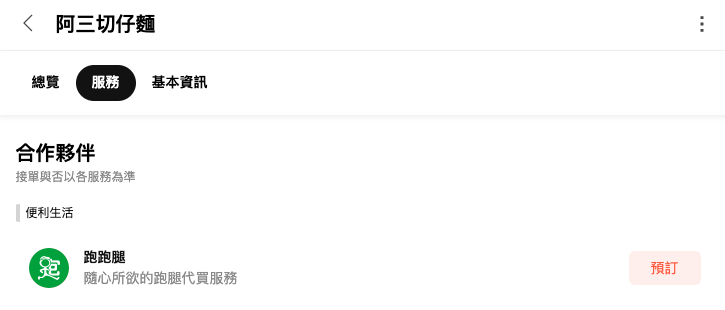 跑跑腿:北部地區立即點擊商家資訊卡下的服務按鈕!