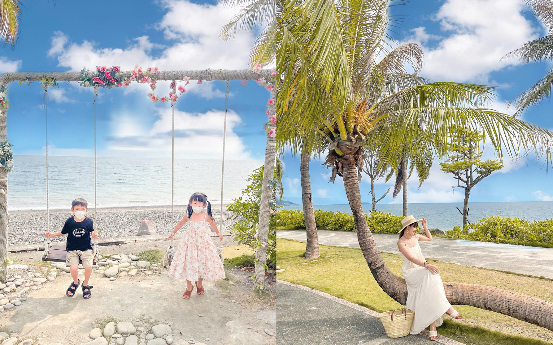 入眼可見一整排椰林大道搭配湛藍天空,精心佈置的裝置藝術與海景相映,讓每一個女孩快門聲停不下來!茉莉灣是一間佔地廣大的海景咖啡廳,擁有可以放空的峇里島發呆亭、純白落地玻璃窗及超大泳池,有著踏進南洋國度的錯覺,除此之外,傍晚時分還能看到絕美夕陽!