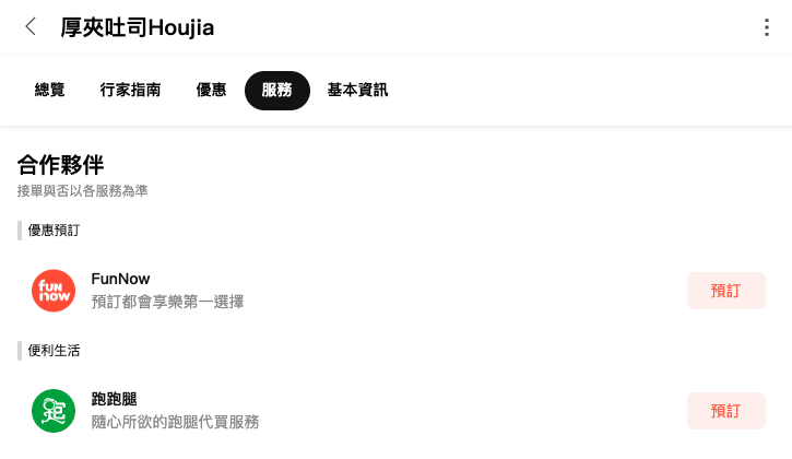跑跑腿:北部地區立即點擊商家資訊卡下的服務按鈕!